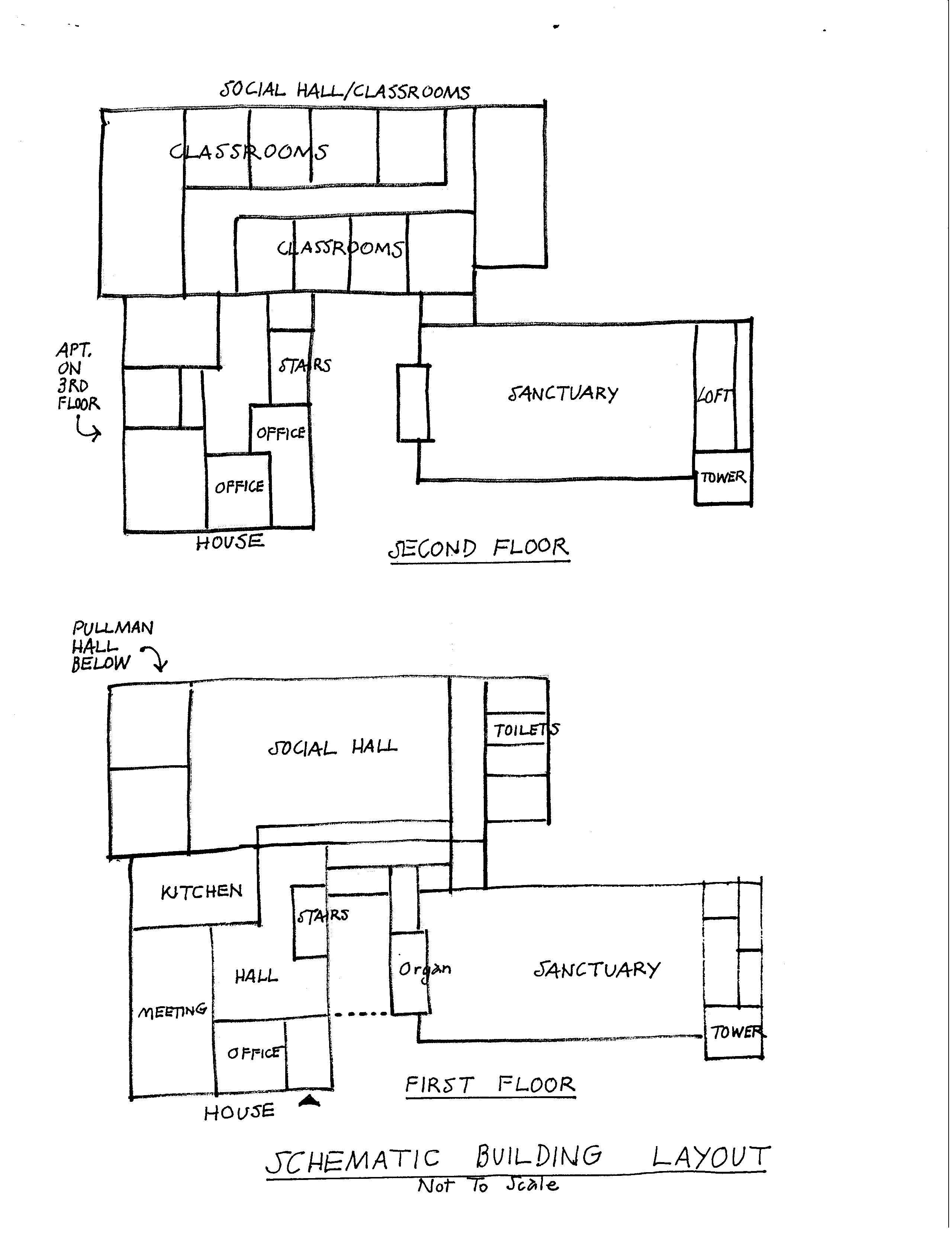 The church facility is so large and complex that one weekend does not allow enough time to thoroughly study in the detail the options before the church, but it did allow enough time to confirm what the congregation already knows. The facility is too large for your current needs. I put some numbers to this reality. The total church is 32,000 sq. feet. A church of your current membership could easily exist in 6,000 to 9,000 sq. feet. As I discussed in our weekend of meetings, I have tried to provide a way to clarify the complexity of the problem and a method of thinking about possible solutions.The membership response was consistent in all the meetings. Everyone agreed that the buildings are too large and too expensive to maintain for the size of the current congregation. I have provided an extensive list of options. I believe some of these can be eliminated without further study, such as selling all the properties and building a new building. Another option that is unlikely, but could be explored, is finding another empty church for sale that would be a more suitable size.